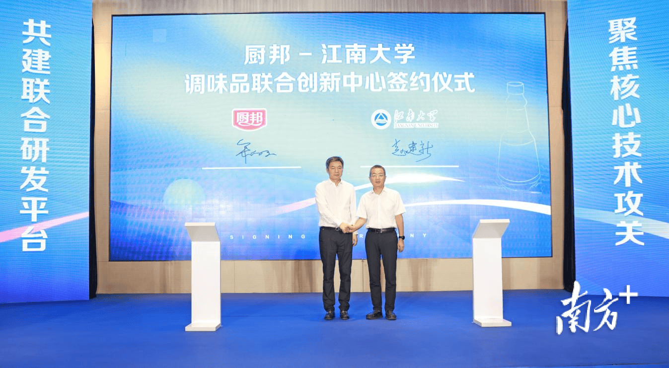 9月4日,广东厨邦食品有限公司(下称“厨邦”)与江南大学正式签署协议,共同成立“厨邦江南大学调味品联合创新中心”。中国工程院院士、江南大学校长陈卫携项目团队,中炬高新董事长黎汝雄及厨邦相关管理和研发人员共同出席签约仪式,中山市科技局及火炬高新区领导参与见证。