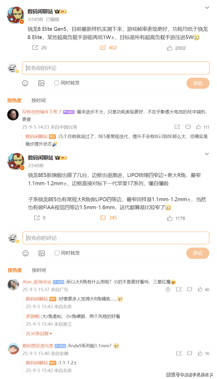 此外,博主还透露多家厂商的新机边框直接对标下一代苹果17系列,“果味十足”成为这些安卓旗舰的共同特点。
