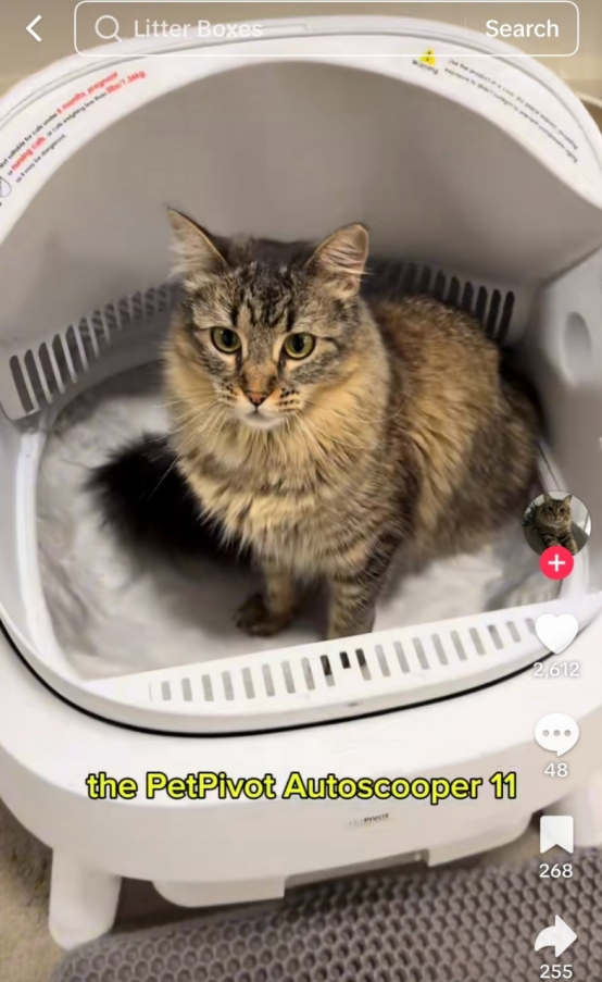美国网友展示宠物猫使用PetPivot自动猫砂盆(图片来自TikTok)